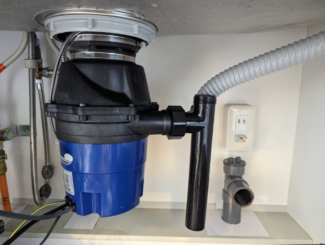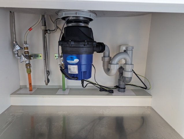 ![]() ↑上のようにオーバーフローのジャバラを接続してしまう業者さんが多いです。 接続するとディスポーザーの自動洗浄に影響を及ぼす他、さまざまなデメリットがあります。 |